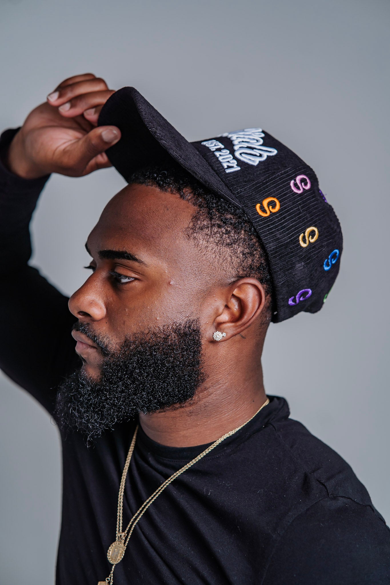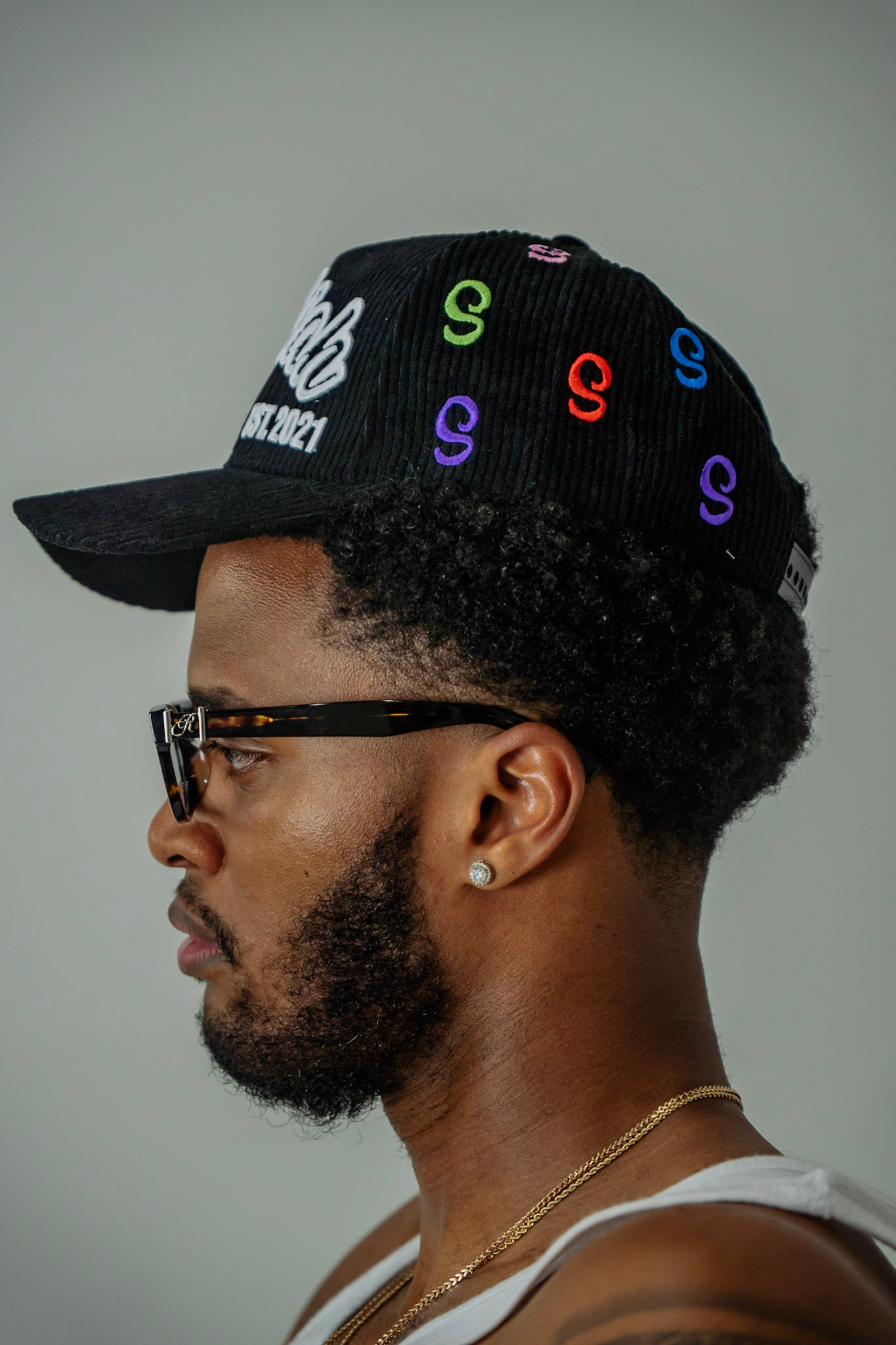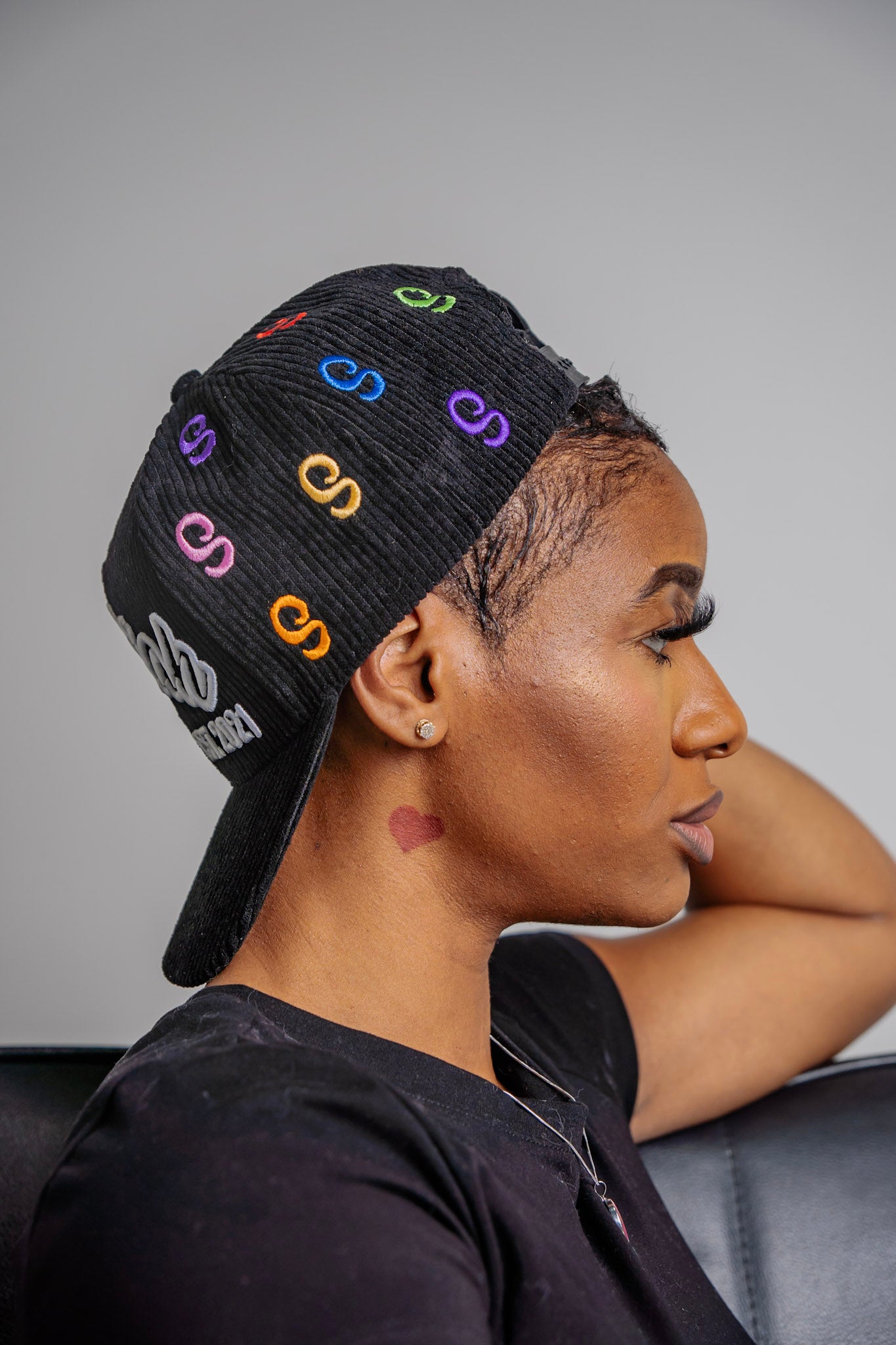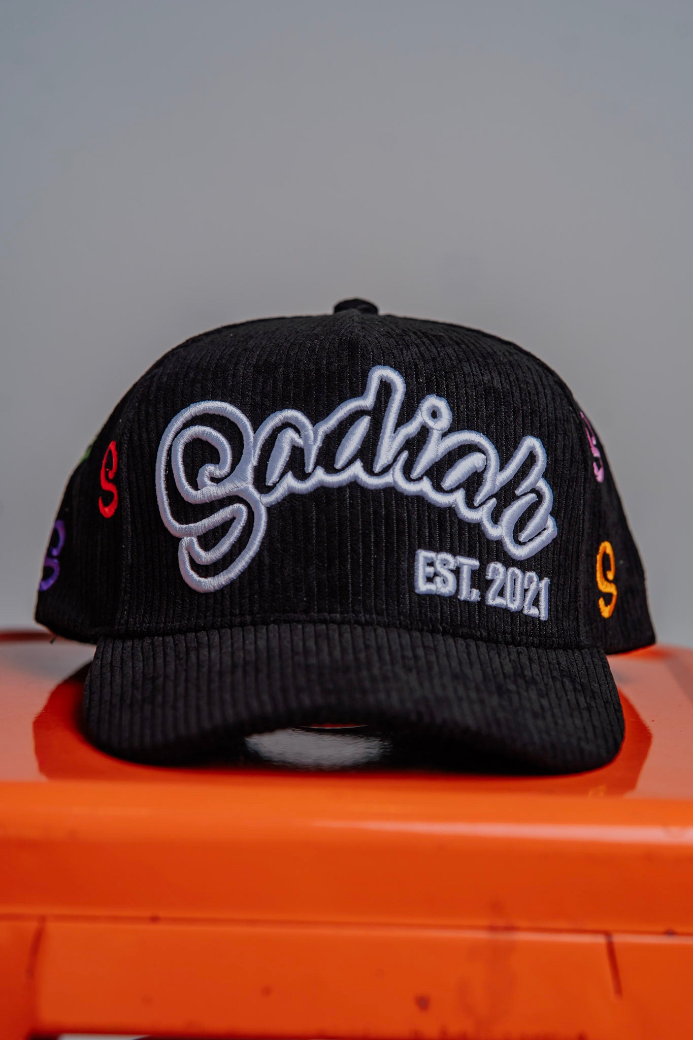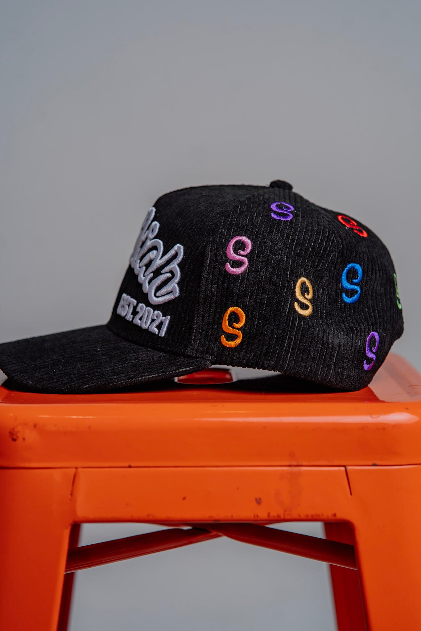 Black Multi Color "S" Logo Corduroy Snapback Hat